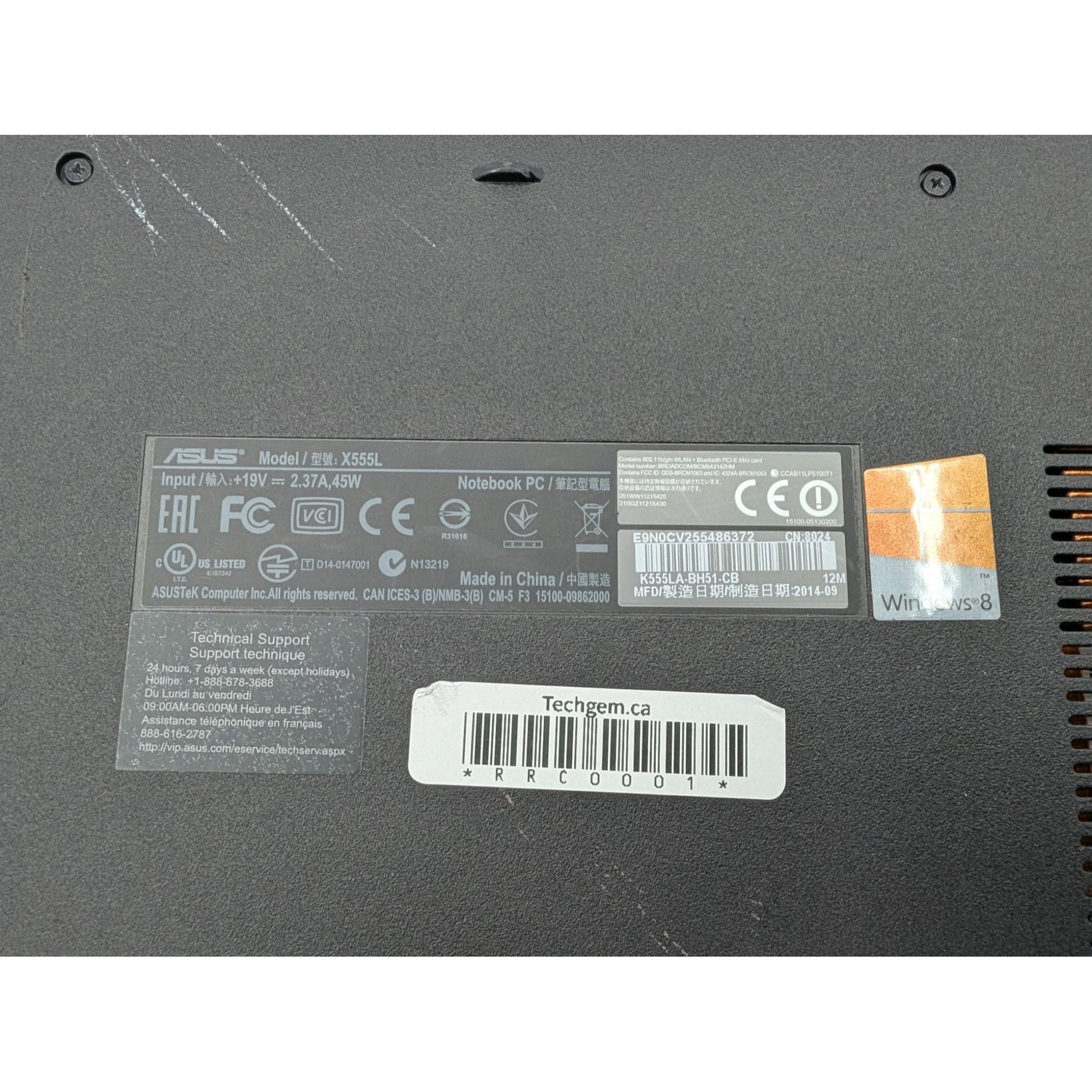 • Model: Asus K555LA-BH51-CB