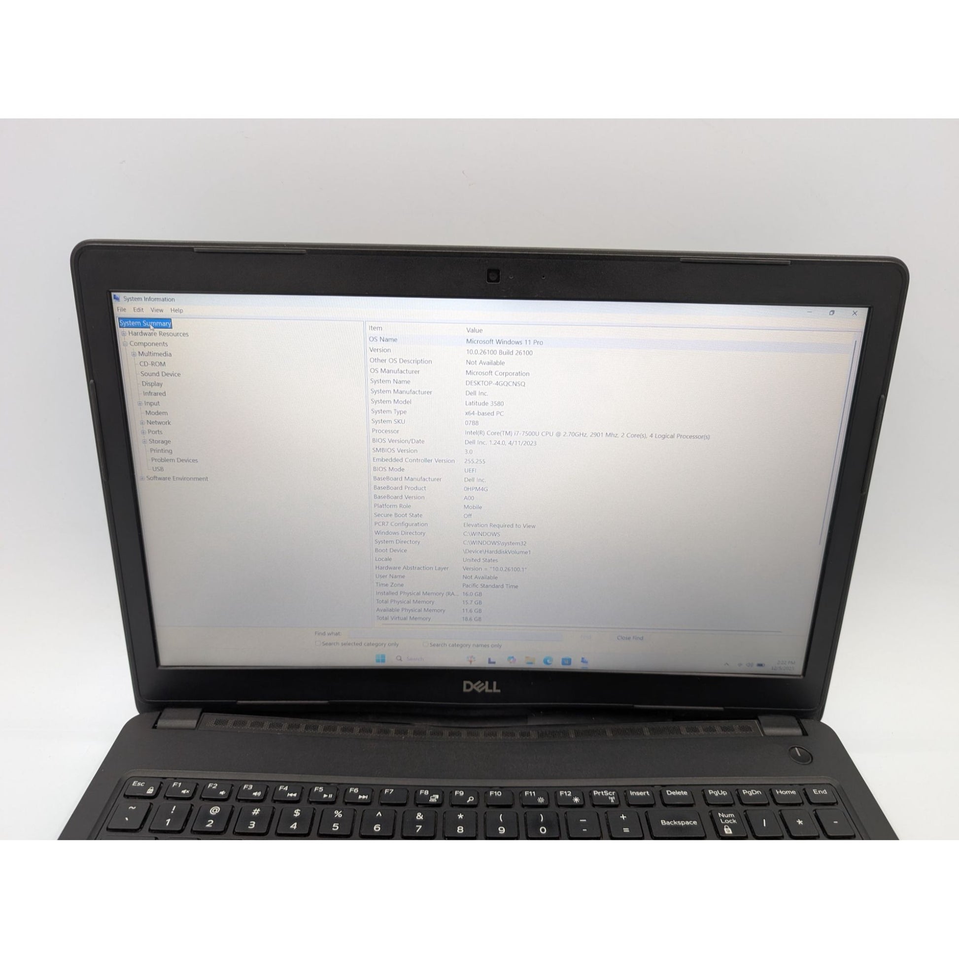 • Model: Dell Latitude 3580