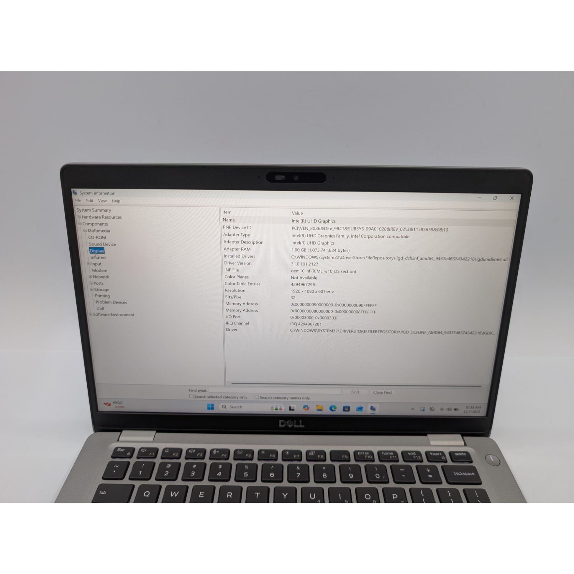 • Processor: Intel i5-10310U @ 1.70GHz