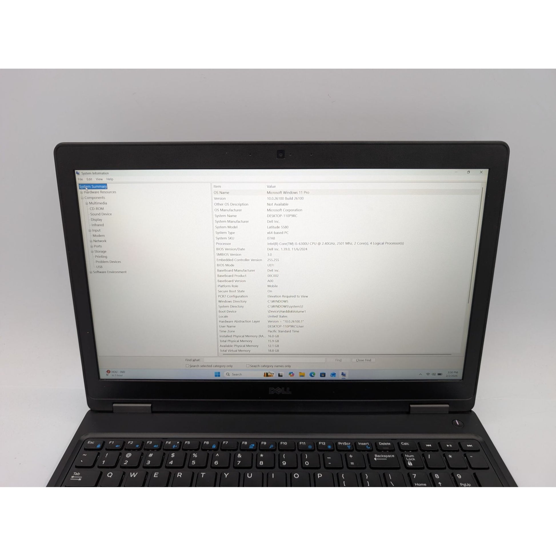 Dell Latitude 5580 15.6" Intel i5-6300U 2.40 GHz 16GB RAM 256GB SSD Win 11 Pro