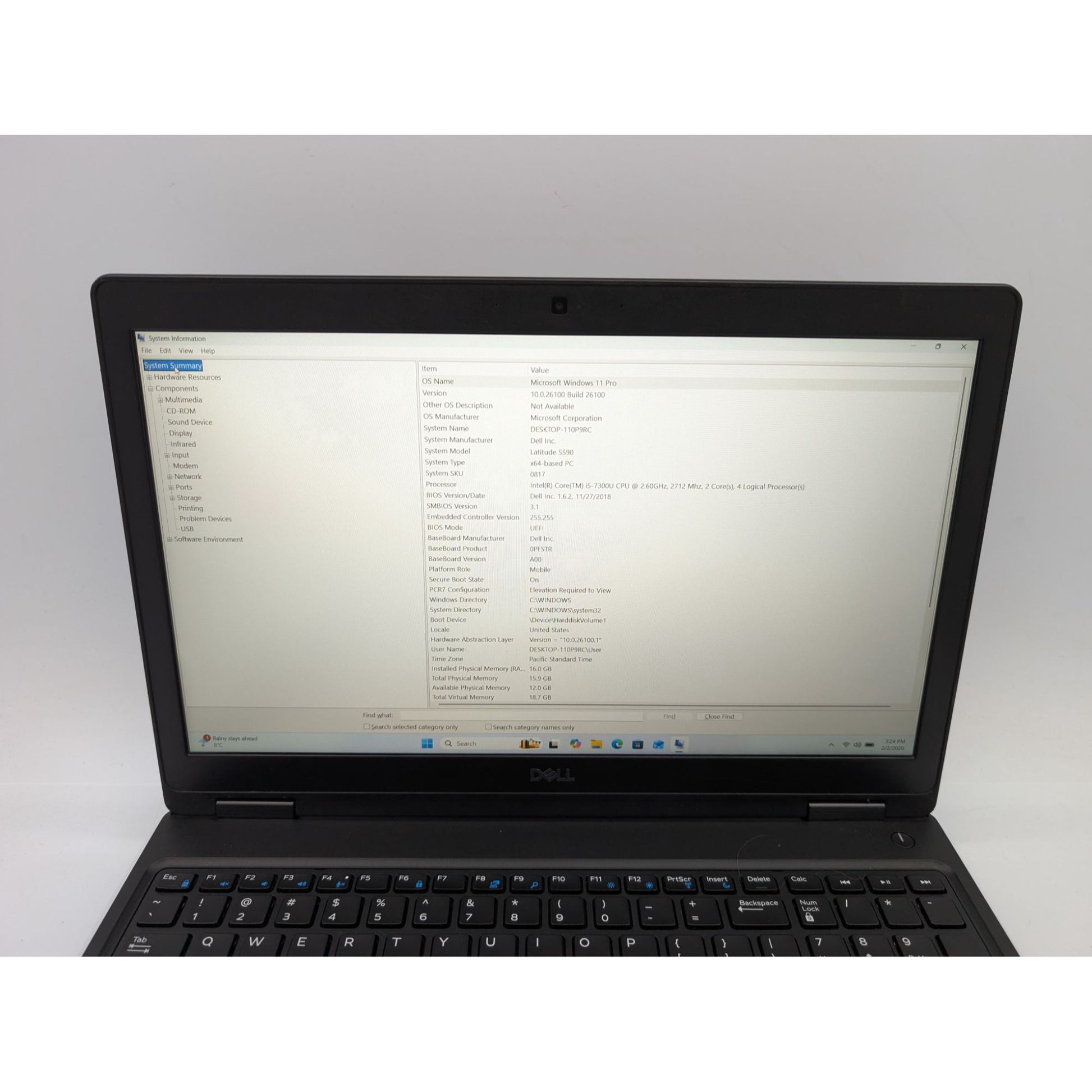 Dell Latitude 5590 15.6" Intel i5-7300U 16GB RAM 256GB SSD Win 11 Pro Activated