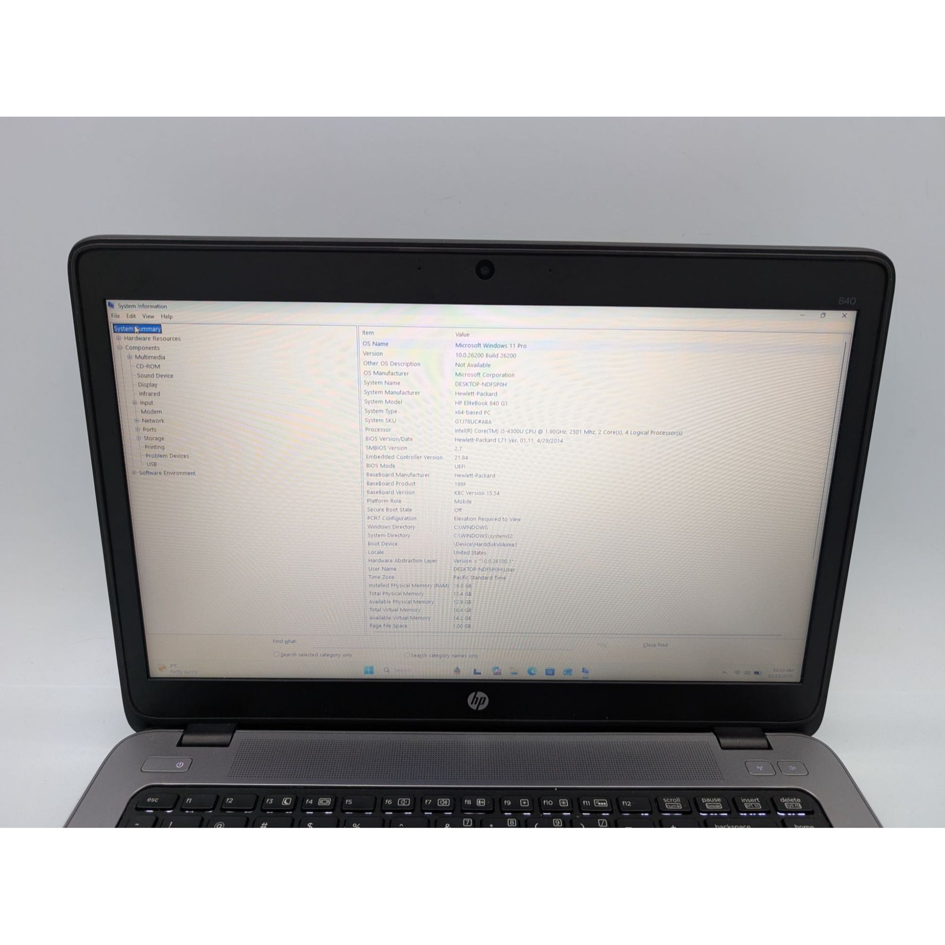 • Model: HP EliteBook 840 G1