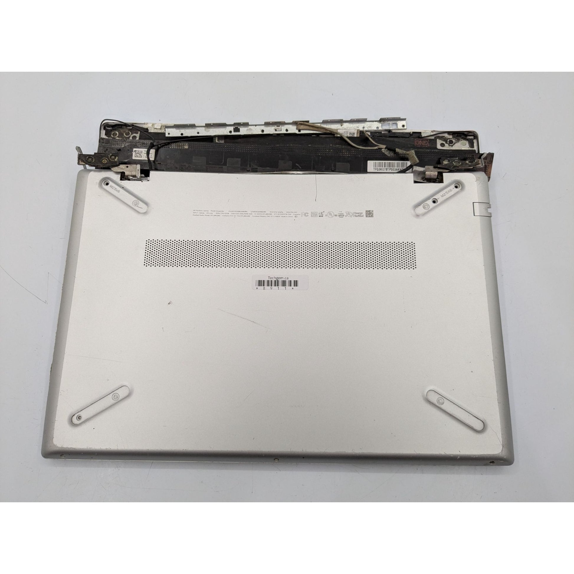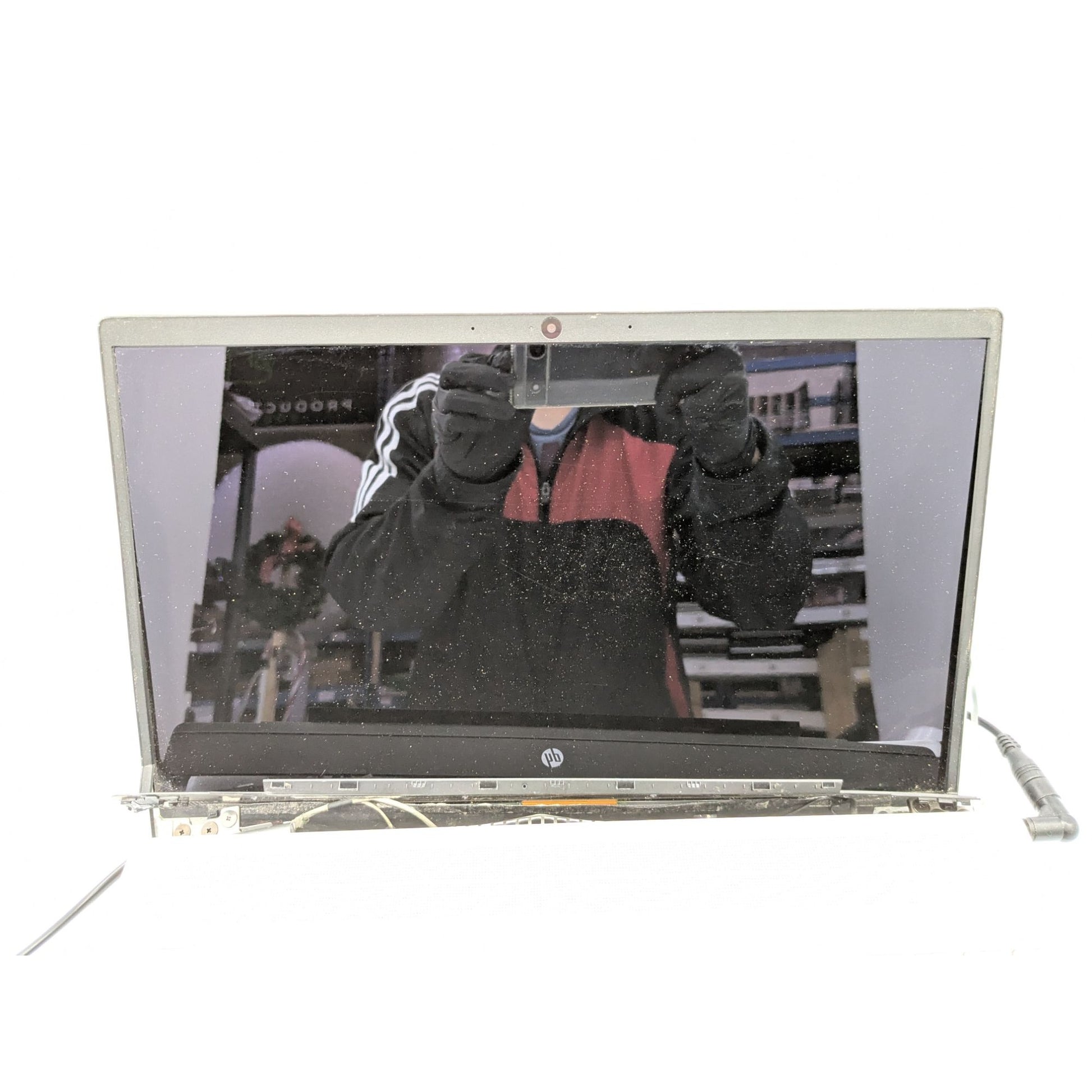 • Screen broken and detached from hinges