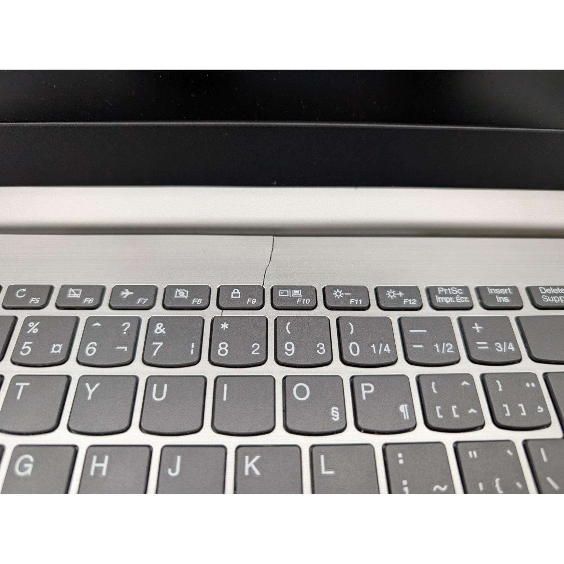 Screen bruising; crack above keyboard.