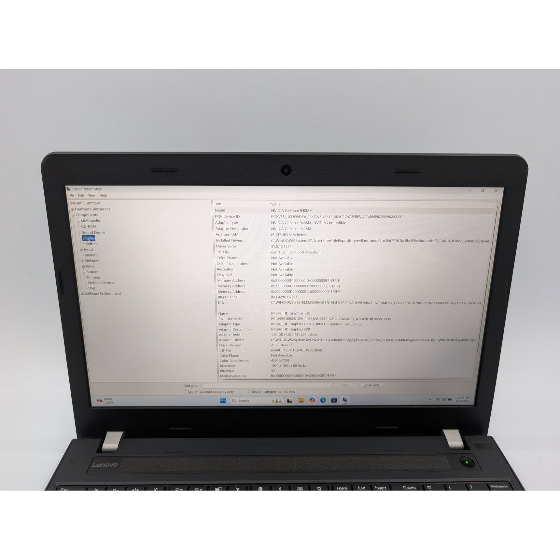 • Graphics: Nvidia GeForce 940MX