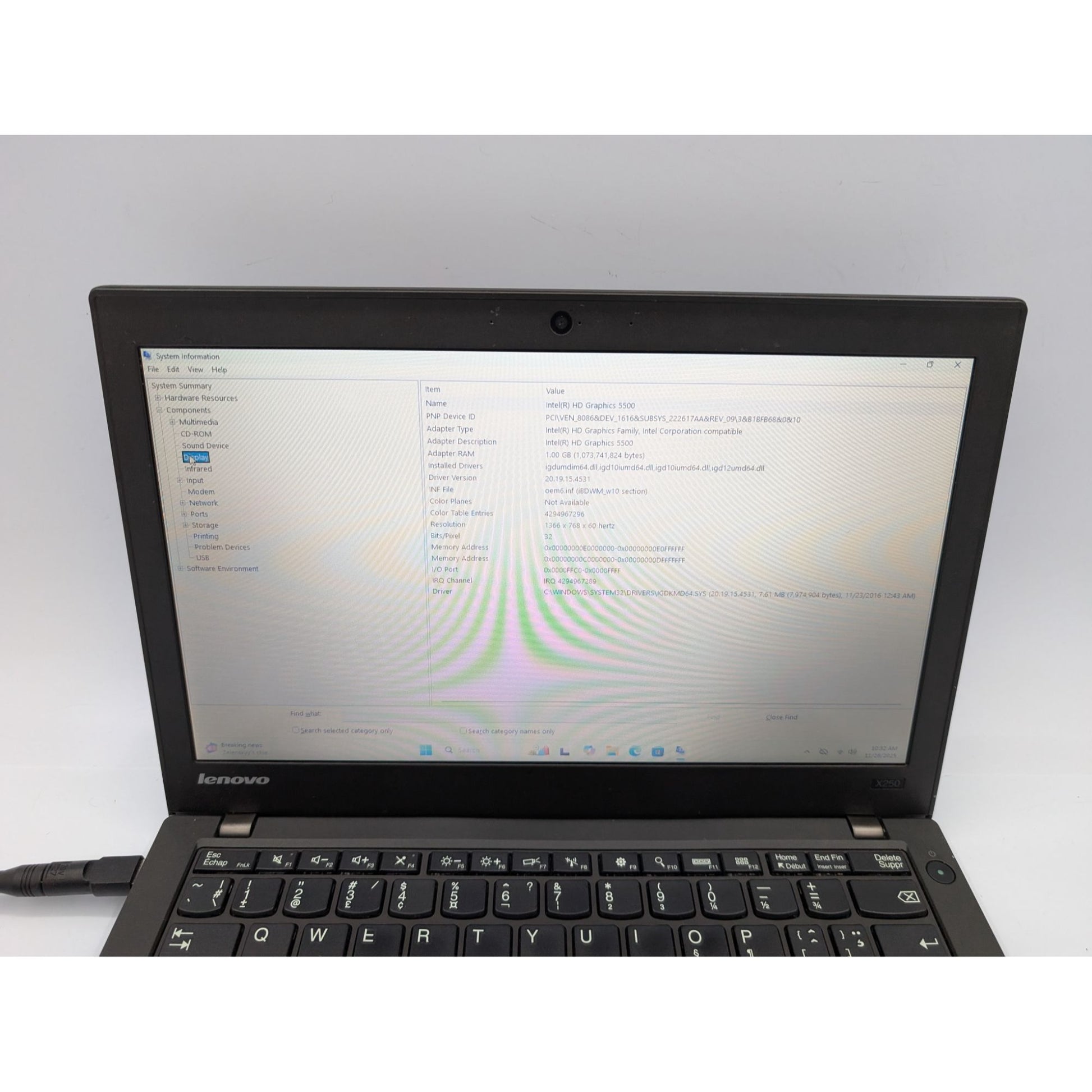 • Model: Lenovo ThinkPad X250