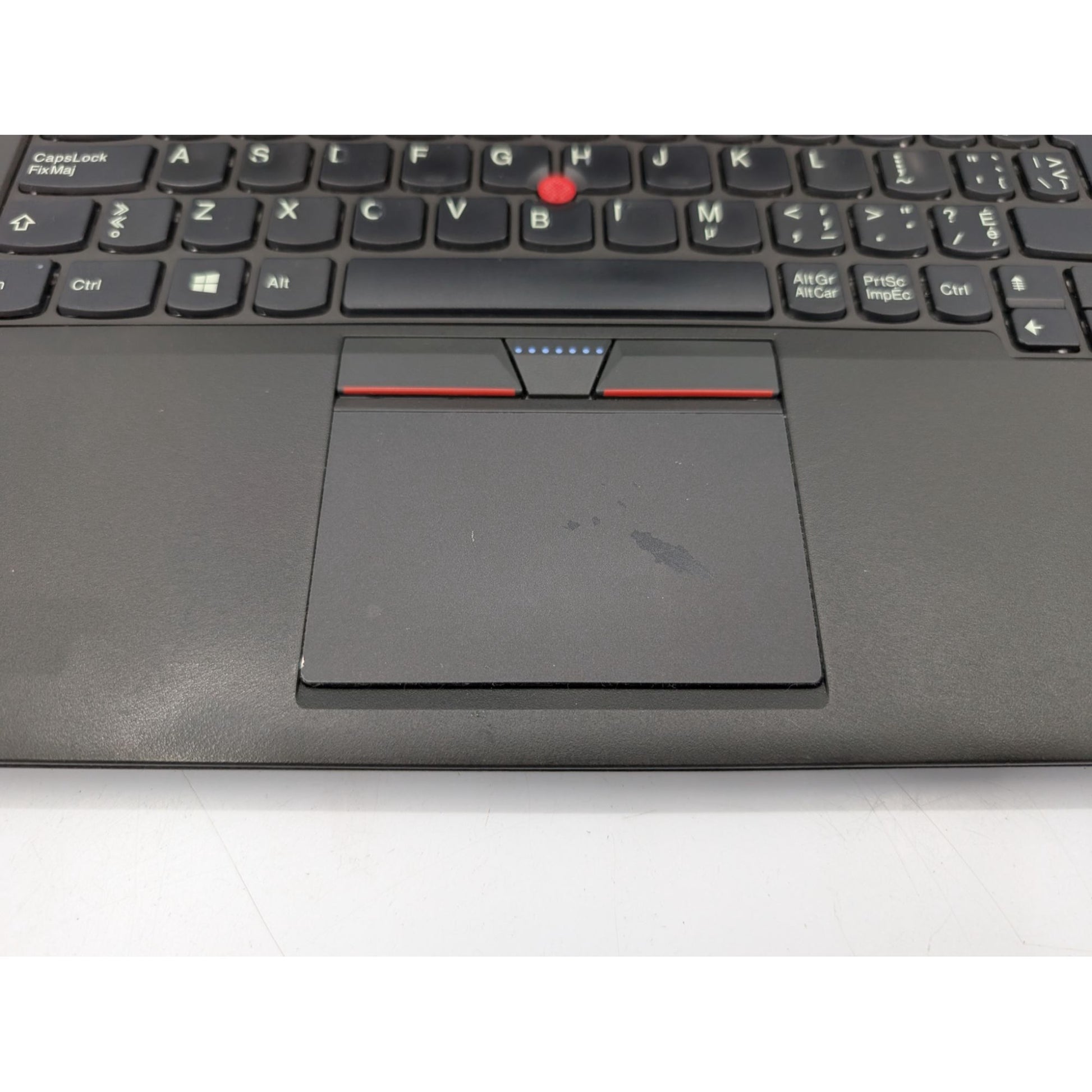 Trackpad coating shows wear.