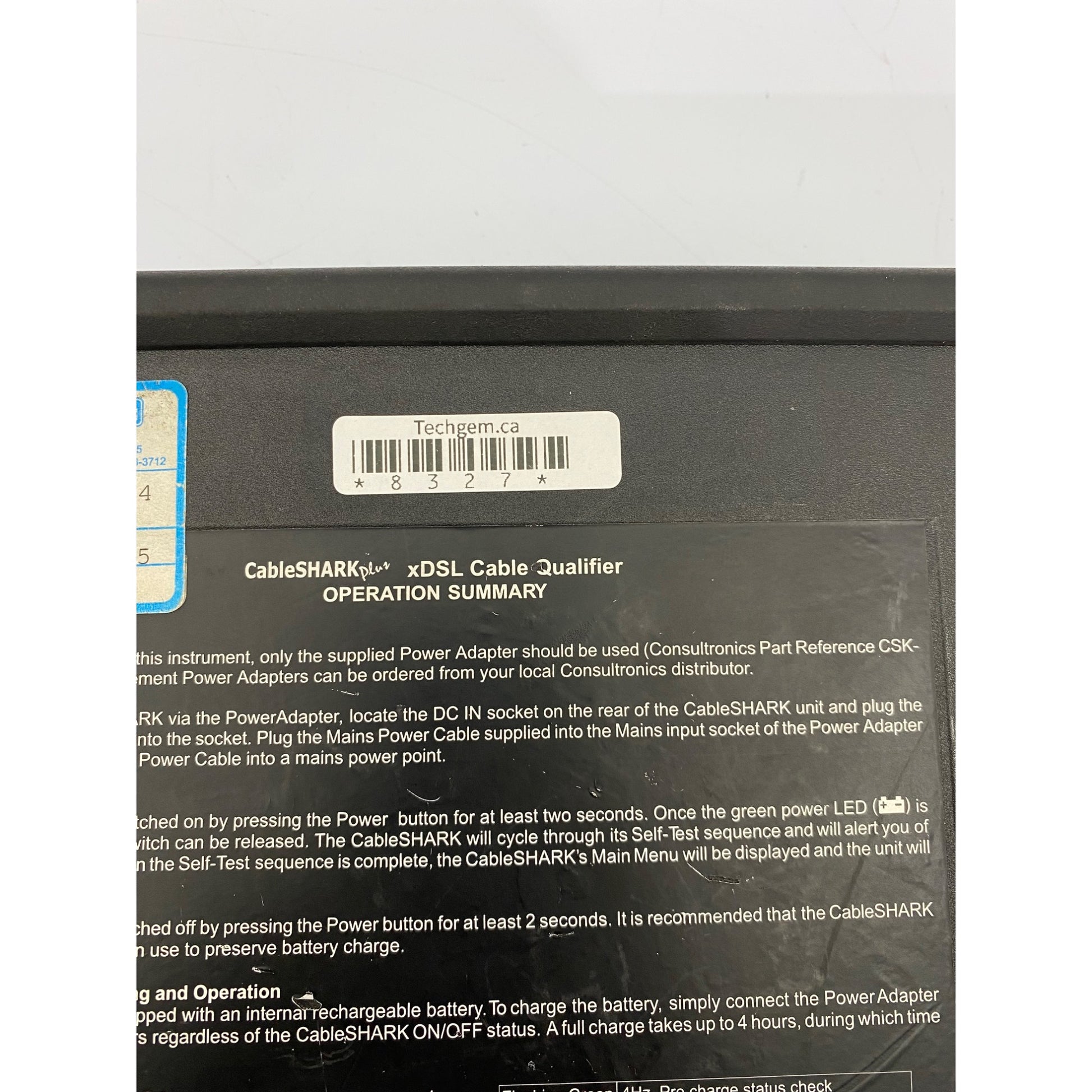 The Consultronics CableSHARK xDSL Cable Qualifier is a robust tool designed for the precise qualification of xDSL cables. This set includes two units and a power adapter, ensuring reliable operation and functionality. The rugged design and comprehensive interface make it ideal for professionals in the telecommunications field.