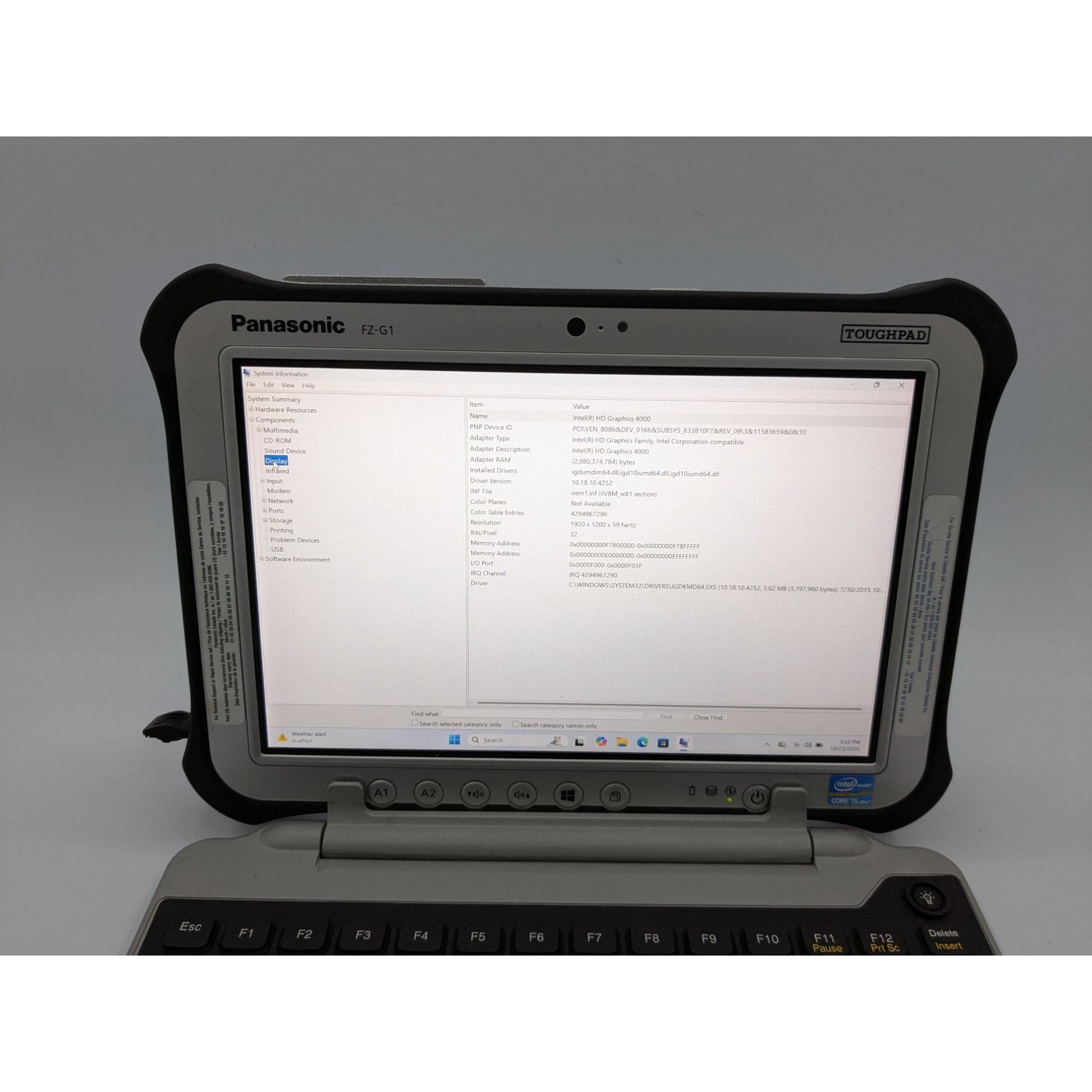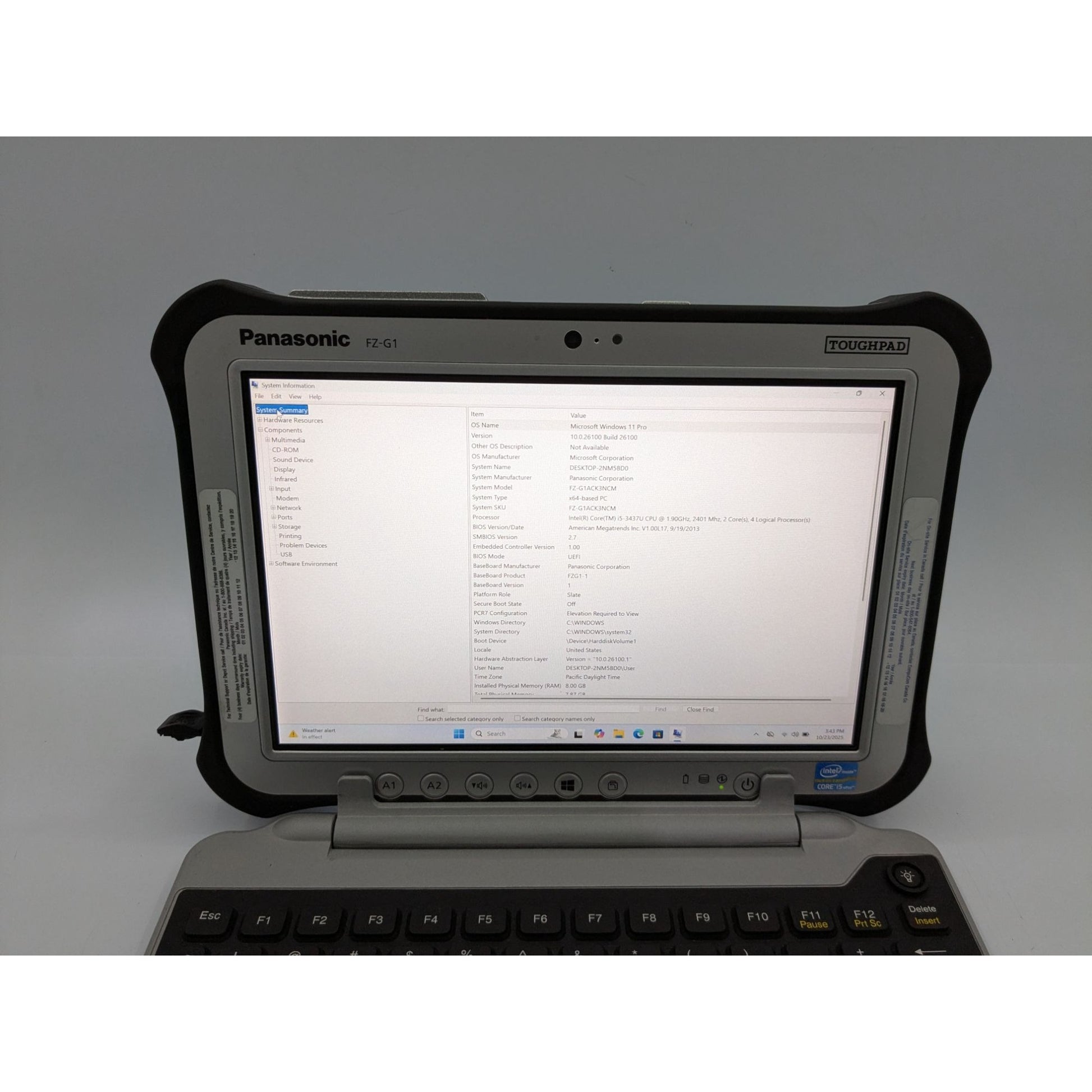 • Model: Panasonic Toughpad FZ-G1